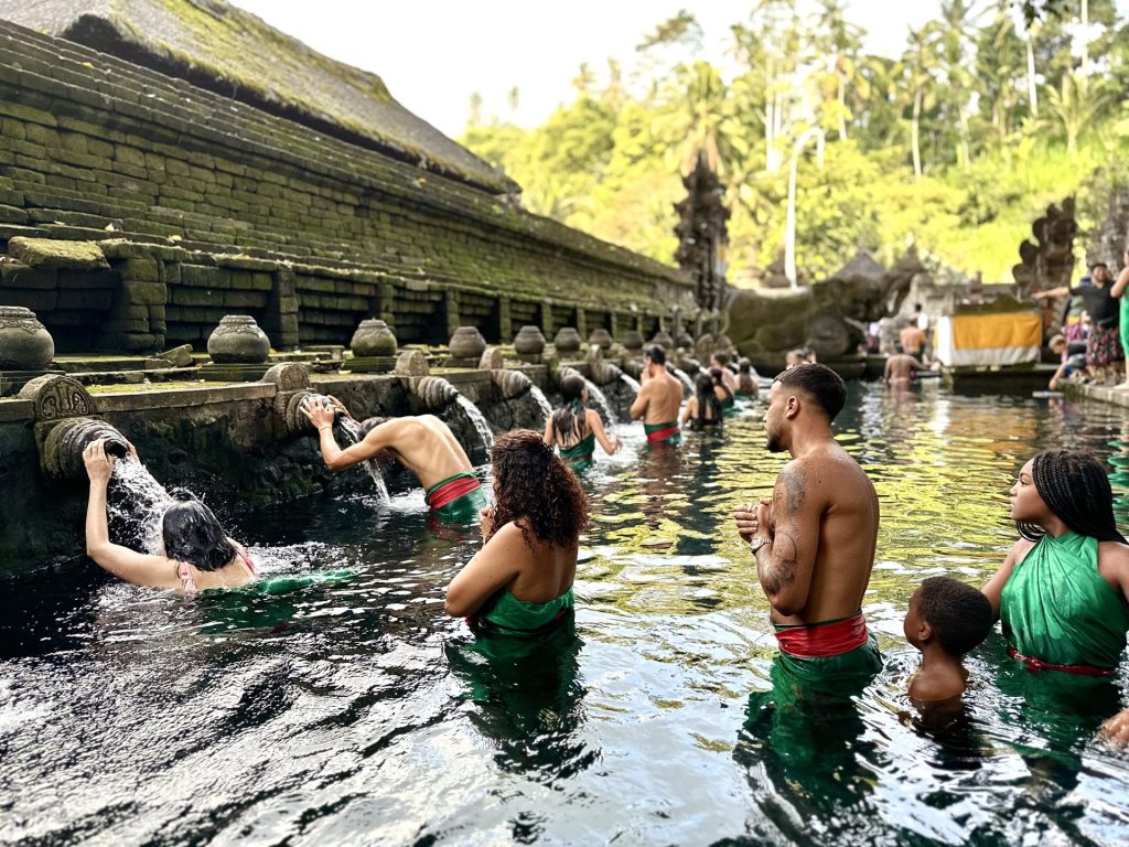 圣泉寺是一座充满生命力的寺庙,也是峇厘岛非常重要的水之寺庙。这里最著名的,就是寺庙中央那长方形的沐浴池,池水来自地下涌出的圣泉。在这里看到信徒们虔诚地排队,将头伸到每一个出水口下,接受圣水的洗礼和祝福,进行 “Melukat” 净化仪式。那份发自内心的虔诚,非常打动人。如果你想体验这份独特的仪式感,记得准备好湿衣物,并在入口处租借纱笼。