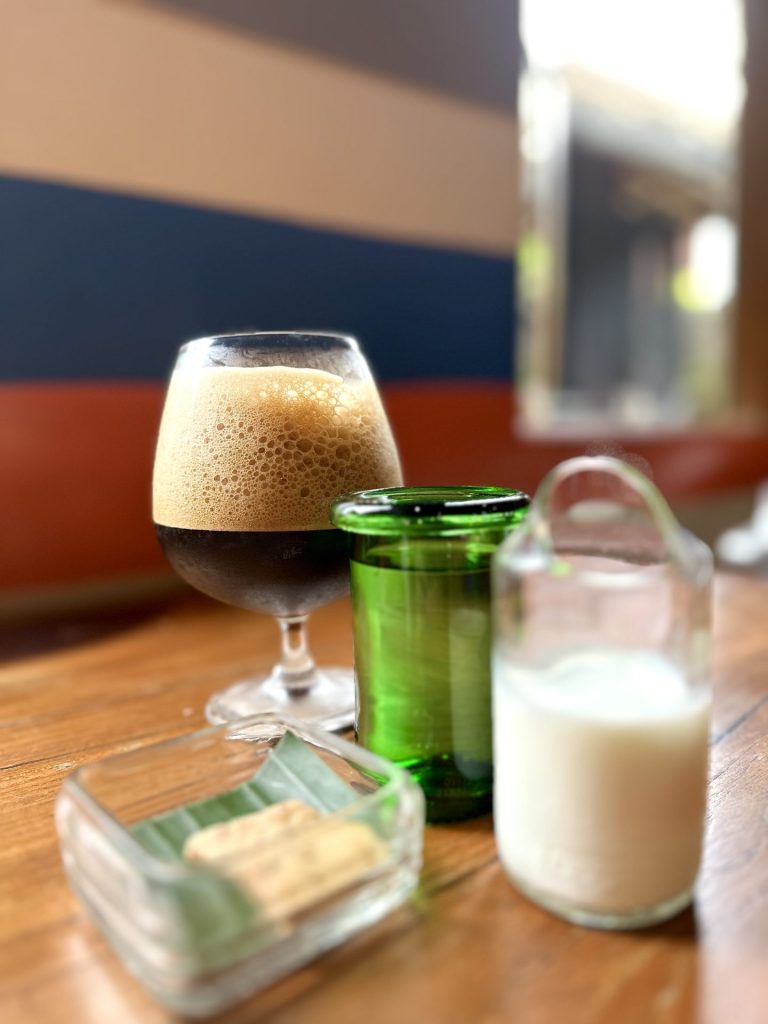 Nitro cold brew original (IDR 48,000)。氮气冷萃咖啡是一种近年来非常流行的咖啡饮品。将氮气注入咖啡后,产生了细腻的泡沫,喝起来口感非常顺滑,就像在喝啤酒一样。但我们不太会欣赏。