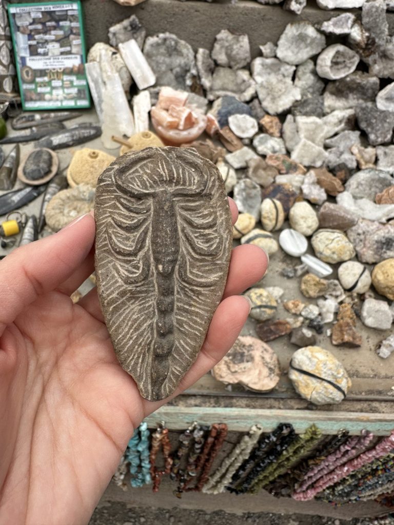 摩洛哥是一个地质丰富的国家,当地人都会不同的地区寻找化石来卖。这一块 是从 Arford 来的蝎子化石。
